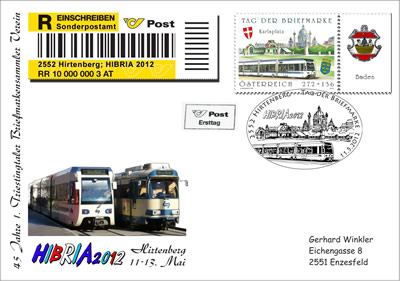 Marken und Stempelmotiv: Badner Bahn am Karlsplatz Belegmotiv: Triebwagen Reihe 400 und 100