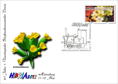 Automatenmarke: "Schlüsselblume" mit Aufdruck "HIBRIA 2012"