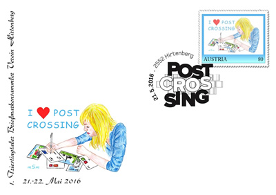 Marken und Belegmotiv: Mädchen beim Schreiben von Postkarten